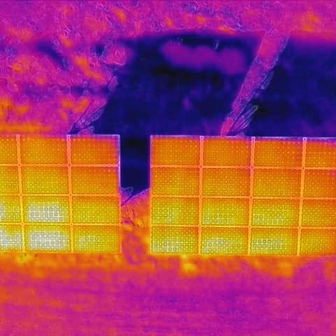 弊社の赤外線によるソーラーパネル点検の取り組みはすでに4年前からスタートしております。初期導入から約5年経過しパネルの点検業務も需要が高まってきております。点検の理屈はソーラーパネルに汚れや影、破損部があると異常発熱を起こし、ホットスポット(約60~70度)を引き起こします。